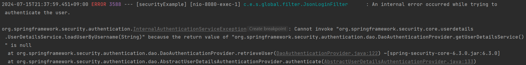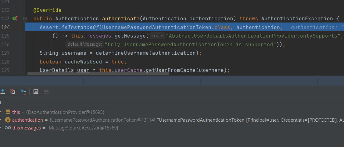 DaoAuthenticationProvider의 authenticate() 메서드가 실행되었다. 즉 UsernamePasswordAuthenticationToken을AnonymousAuthenticationProvider는 지원하지 않고, DaoAuthenticationProvider는 지원한다는 뜻!