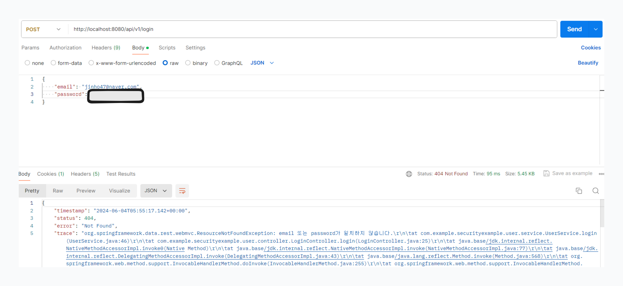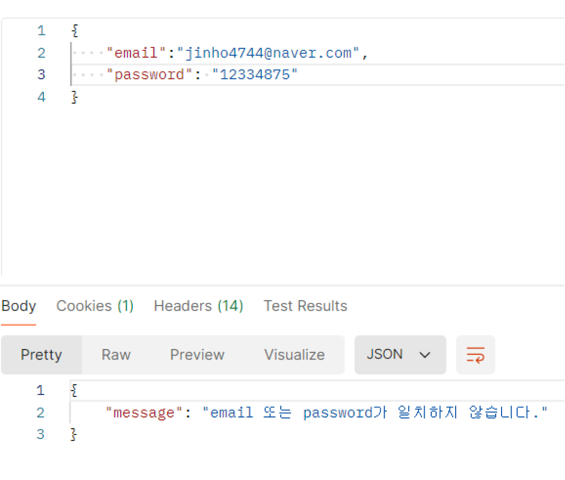 비밀번호를 확인하여 틀리면 Exception을 발생한다.