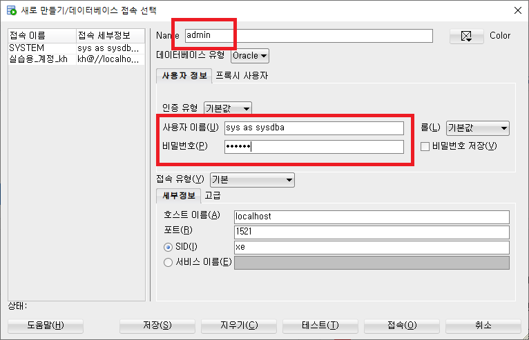 먼저 admin 계정으로 접속한다.